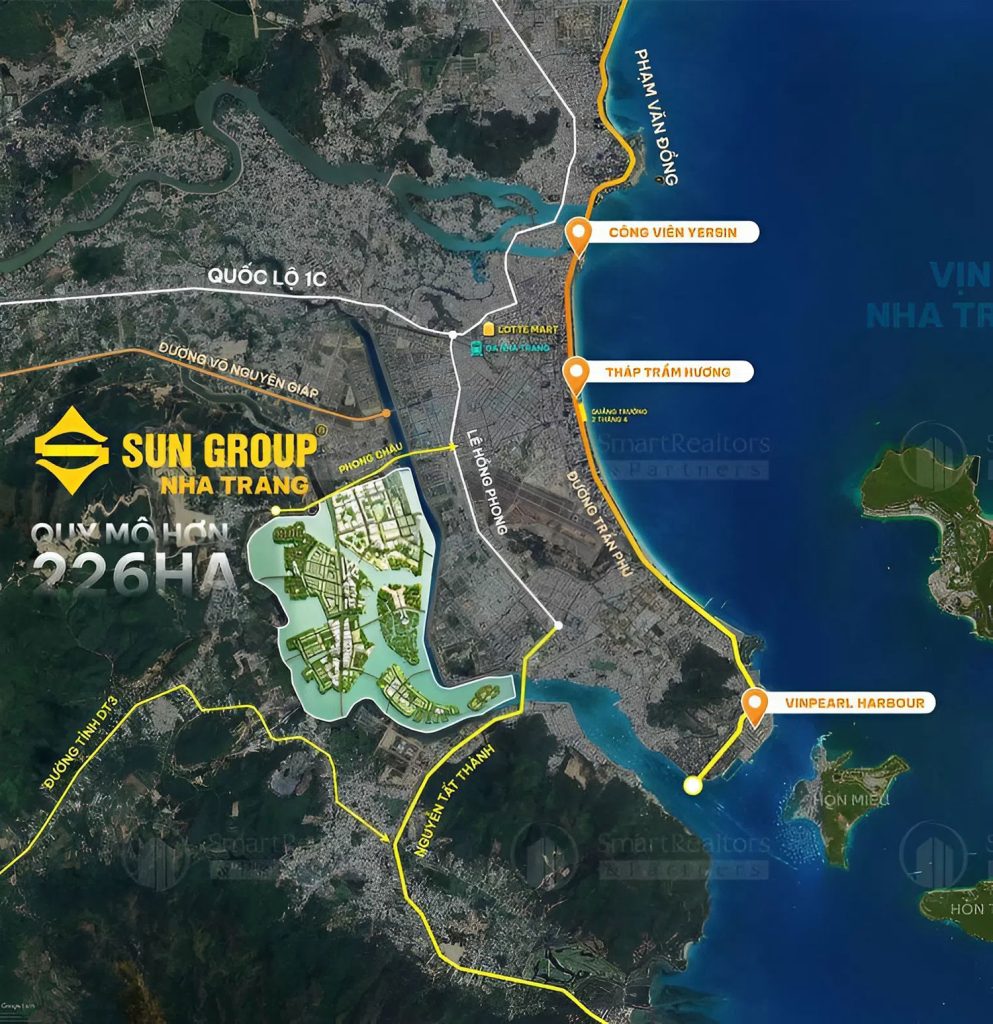 Không chỉ mang ý nghĩa phong thủy, vị trí này còn là điểm kết nối chiến lược của toàn thành phố: nằm trên trục Nguyễn Tất Thành – tuyến huyết mạch nối sân bay Cam Ranh với trung tâm Nha Trang; chỉ 10 phút đến biển Trần Phú và 25 phút đến sân bay.